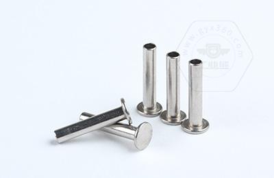 安裝時尾部空心部分受擠壓向外翻邊,形成卡扣,固定連接件。 扁圓頭半空心鉚釘主要用于金屬薄板或皮革、帆布、木料等非金屬材料的鉚接場合。