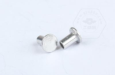 安裝時尾部空心部分受擠壓向外翻邊,形成卡扣,固定連接件。 扁圓頭半空心鉚釘主要用于金屬薄板或皮革、帆布、木料等非金屬材料的鉚接場合。